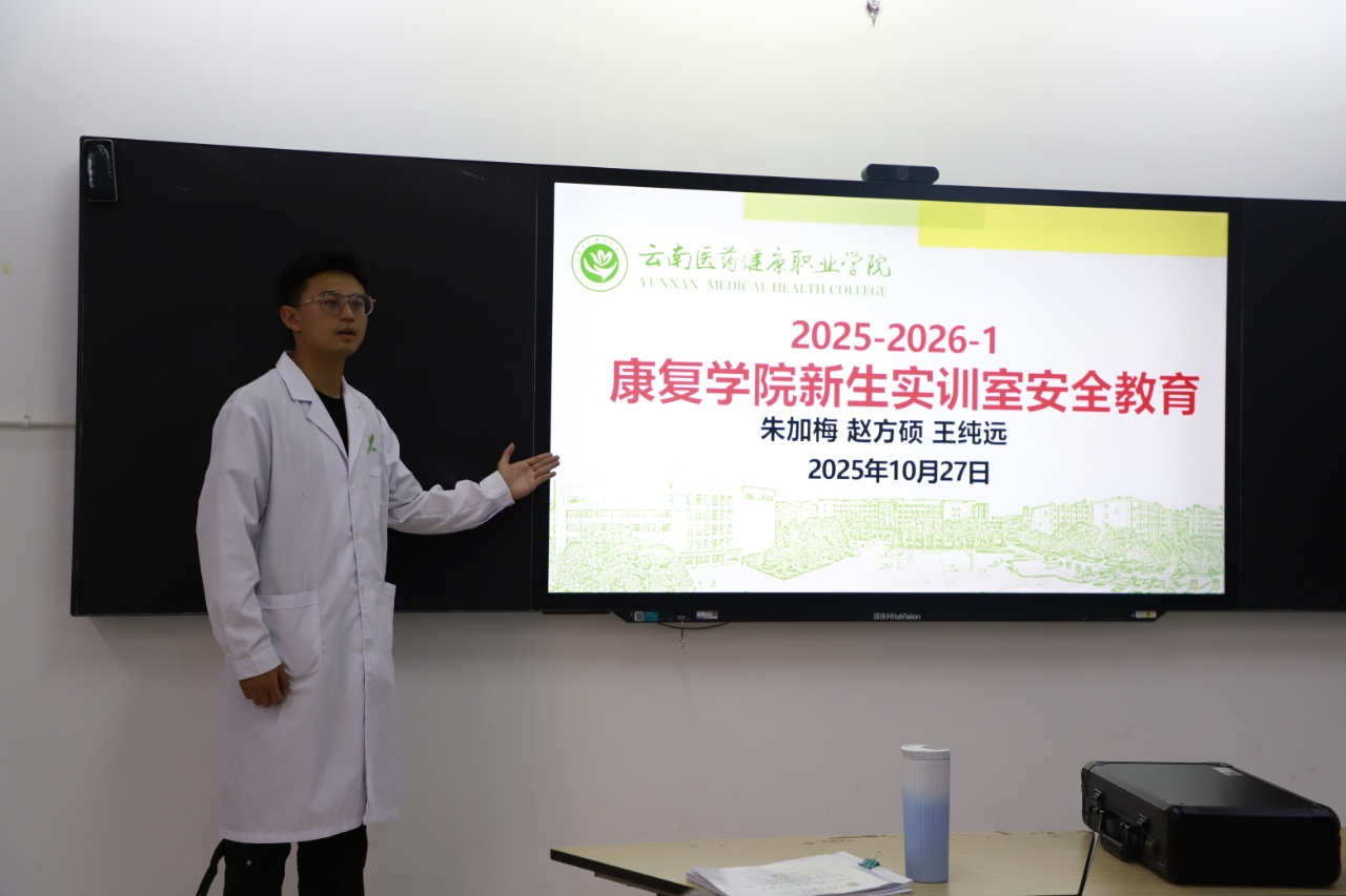 为加强新生实验室安全意识,规范实验操作流程,2025年10月27日下午,康复学院在安宁校区组织开展了一场面向2025级针灸推拿、康复治疗技术、中医养生保健、中医康复技术四个专业新生的实验室安全准入宣讲活动。本次活动由康复学院与基础药学院联合举办,旨在帮助新生树立"安全第一、预防为主"的实验理念,为后续实训课程打下坚实基础。